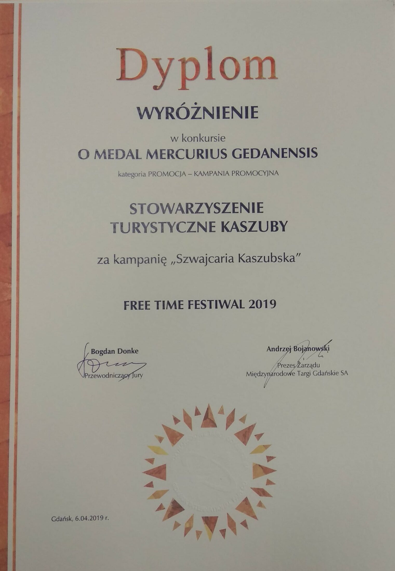 Informujemy, że w miniony weekend na targach Free Time Festiwal otrzymaliśmy wyróżnienie w konkursie o Medal Mercurius Gedanensis w kategorii PROMOCJA – KAMPANIA PROMOCYJNA!